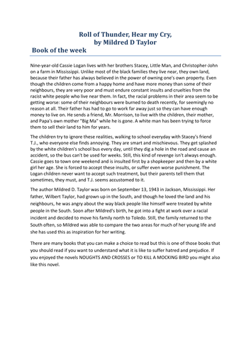 Roll Of Thunder Hear My Cry By Mildred Taylor Teaching Resources